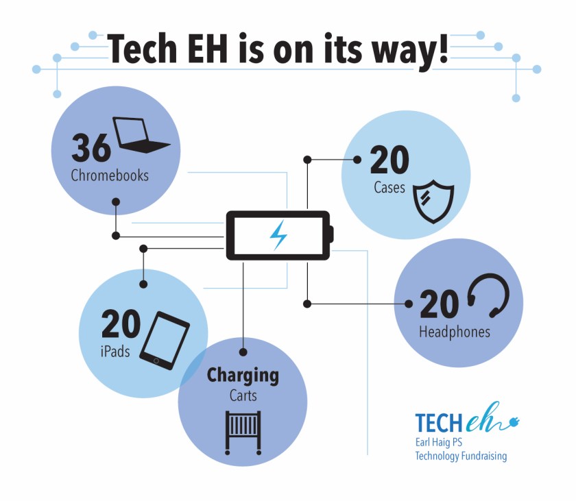- While our TechEH fundraiser came to an abrupt conclusion due to Covid-19, we want to thank everyone who contributed ideas, money, and time to this initiative. Together, we raised over $15,000, and the devices that the school was able to purchase with that money have proven to be invaluable to students during the past few months of remote learning.